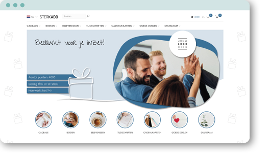 Het personeel kiest op de webshop z'n favoriete bedankje(s). Het assortiment bestaat uit ruim 1500 cadeaus, gezellige uitjes, populaire cadeaukaarten, boeken, tijdschriften en (donatie aan) goede doelen. Voor ieder wat wils!